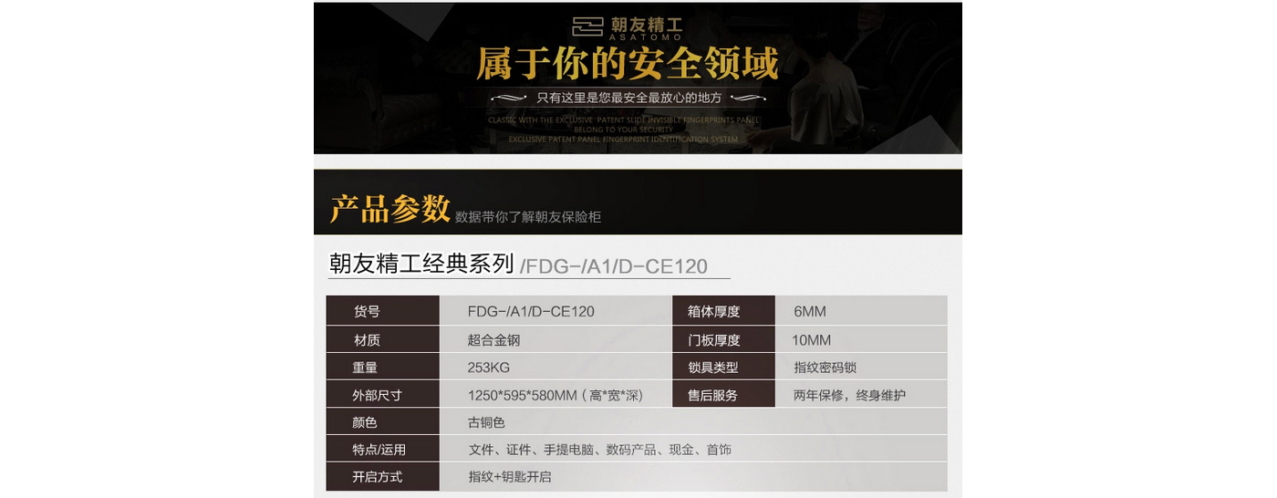 永發旗下朝友CE120經典指紋3C保險柜尺寸說明:1250高*595寬*580深mm(含底座) 重量:253kg